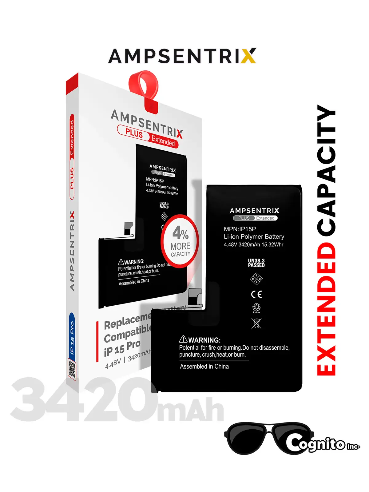 - Reemplazo de batería Ampsentrix para iPhone 15.